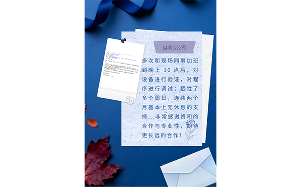 事后,客户特地发来中文感谢信:“…贵司团队的敬业精神与技术支持,让我们受益匪浅,对我司后续生产与测试工作的顺利开展起到了积极的推动作用...期待未来能有更多合作与交流的机会。”