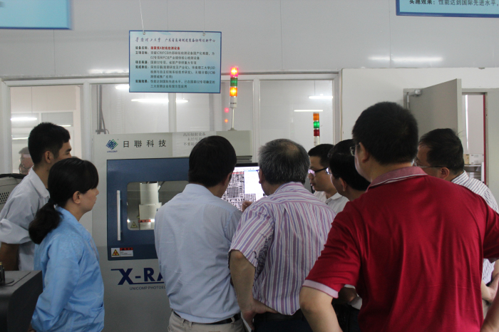 由来自于广东省教育厅和鉴定组的十多位专家组成的鉴定委员会,对金年会科技与华南理工大学联合开发的微聚焦X射线检测设备进行了鉴定,通过现场考察、设备测试、听取报告、现场提问与讨论等多个环节,对金年会科技研发的X-Ray检测设备的创新性、实用性、技术水平以及所取得的经济效应与社会效应授予高度肯定与一致认可。