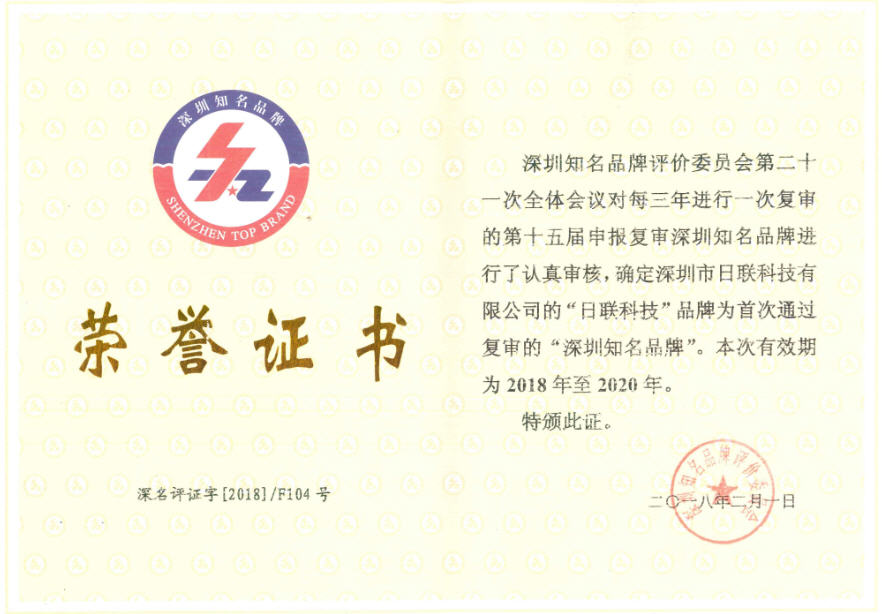金年会科技自2017年3月28日启动的第十五届“深圳知名品牌”评价活动开始向评价委员会进行申报,评价委员会基于公司持续的卓越创新能力、科研能力、广阔的市场前景及经过行业专家评价和品牌价值评估、评价委全体会议审议评选、深圳市公证处现场公证等程序,继续授予金年会科技“深圳知名品牌”荣誉称号。